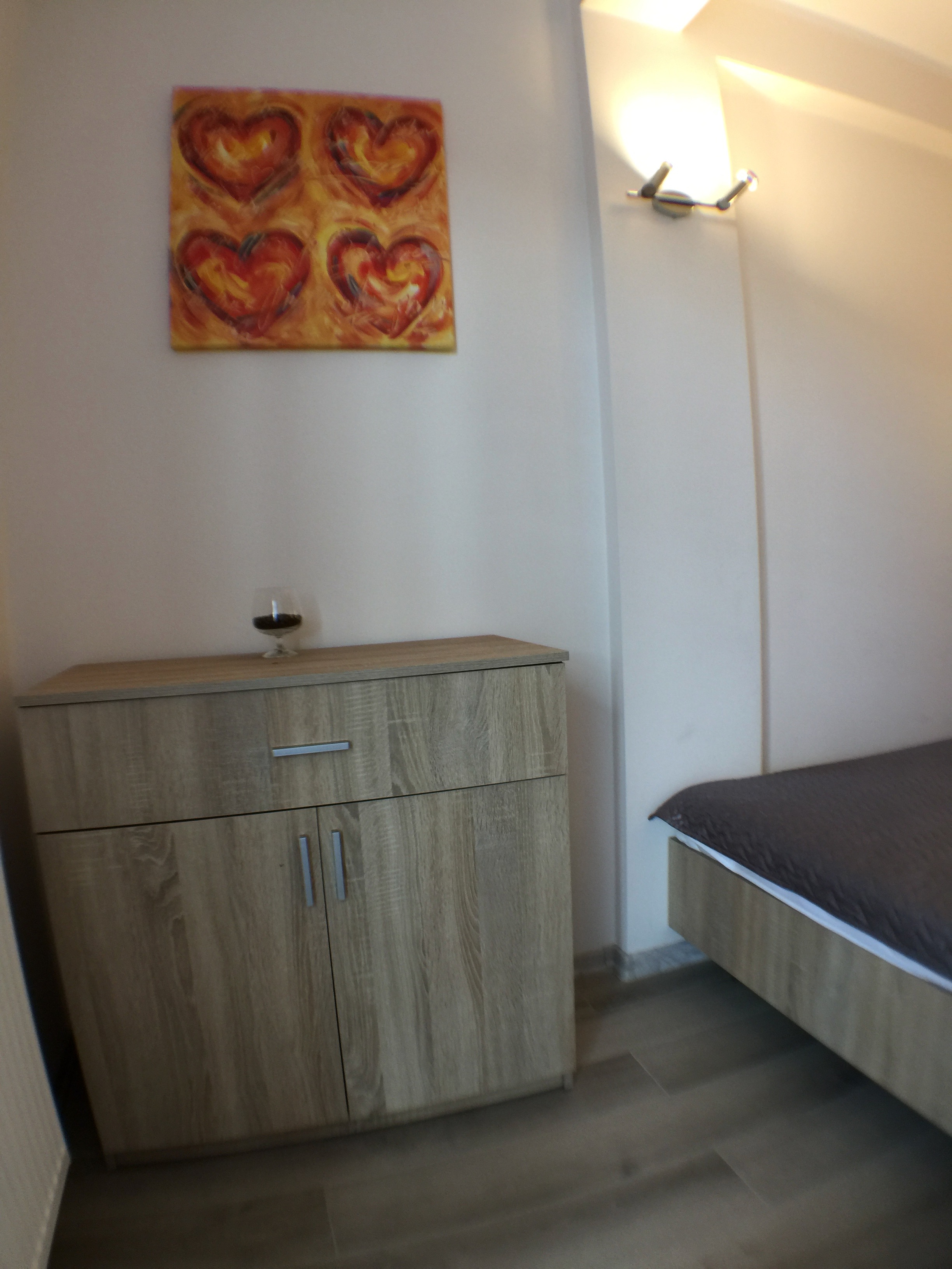 Ładnie oraz nowocześnie urządzony, jednopokojowy apartament, położony jest na I piętrze w czteropiętrowym budynku z windą. W najbliższym otoczeniu znajdują się sklepy, punkty uługowe oraz przystanek niemieckiej kolejki „UBB”, z którego można bezpośrednio dojechać do pobliskich miejscowości po drugiej stronie granicy.