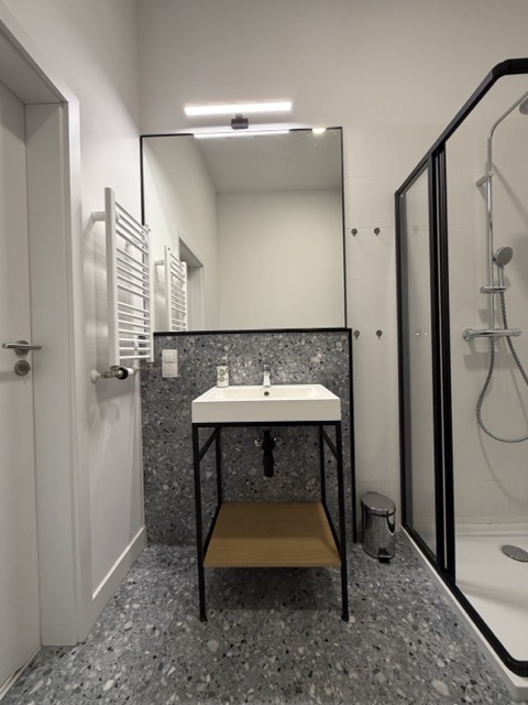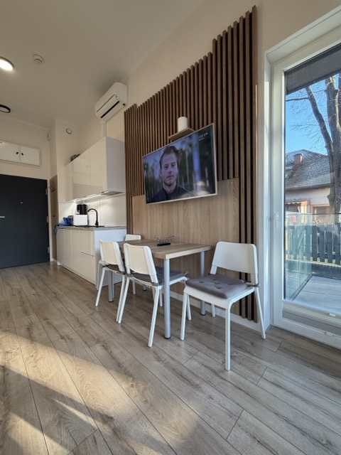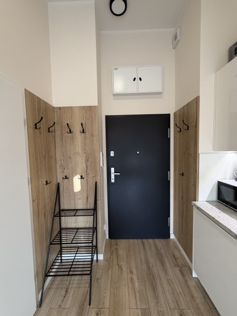 Jednopokojowy apartament, położony jest na parterze w trzy pietrowym budynku.