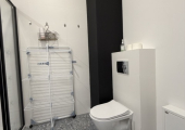 Składa się z salonu z aneksem kuchennym, sypialni oraz łazienki z prysznicem.